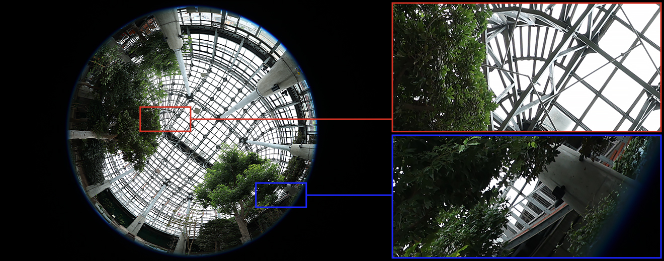 A compact optical design is made possible using two replica aspherical lenses that aid in correcting spherical aberration and distortion. This helps to produce crisp, high-resolution images throughout the entire frame even at extreme fisheye angles.