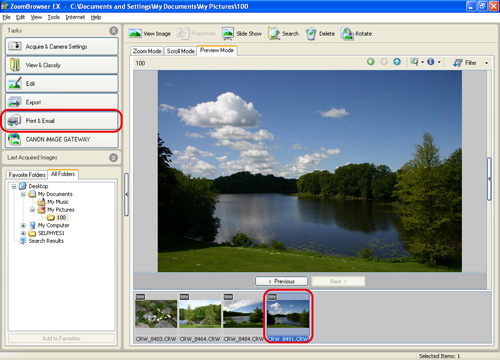 2. Select the image to be printed, and then click [Print & Email].