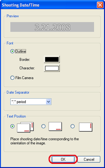 5. When the [Shooting Date/Time] dialog box appears, set the styles for the dates to be entered.