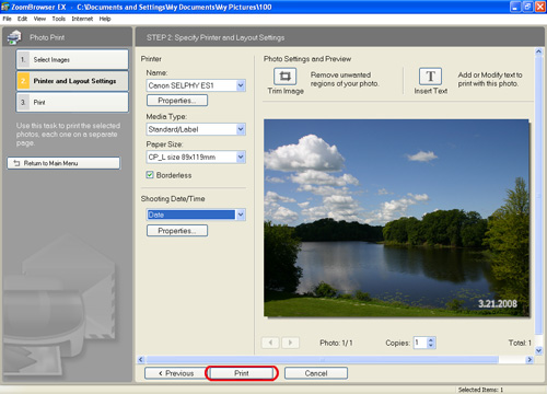 4. When the [Photo Print] screen appears, make the following settings.