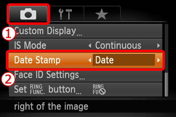 - In some shooting modes it may not be possible to configure the [Date Stamp] setting.