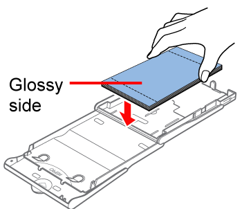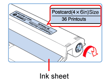 - Holding the ink cassette without touching the ink sheet, check the size (such as #Postcard (4x6 in.) Size" or "Card Size") to make sure it matches the size of paper you will print on.