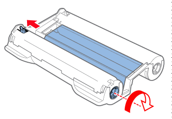 - Make sure the ink sheet is taut. Loose ink sheets may tear when loaded. If the sheet is loose, turn the sprocket as shown.
