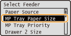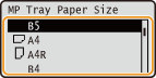 ] to select <MP Tray Paper Size>, and press [