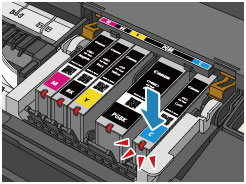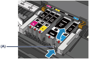 (2) Press on the top of the ink tank until the ink tank snaps firmly into place.