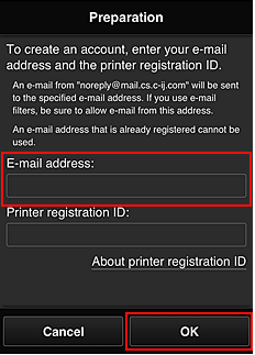 Your e-mail address will be used for the account information to log in to Canon Inkjet Cloud Printing Center.