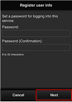 9. In the user information entry screen, enter your [ Password ], and select [ Next].