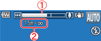 ] (wide angle). (A zoom bar showing the zoom position is displayed, along with the area in focus.)