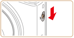 When shooting in [AUTO] mode in low-light conditions, [Raise the flash] may be displayed on the camera’s screen. In this case, please move the [