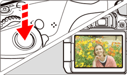 To shoot still photos, press the shutter button completely.