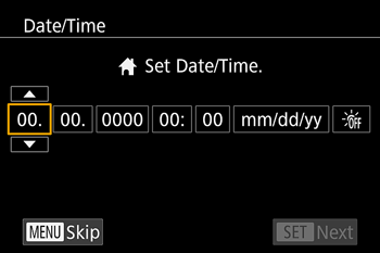 - Unless you set the date, time, and home time zone, the [Date/ Time] screen will be displayed each time you turn the camera on. Specify the correct information.