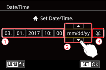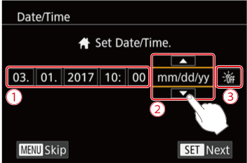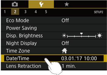 Set the daylight saving time (one hour is added to the current time).- Touch [Date/Time], and then press the [