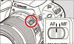 - If the attached lens has an Image Stabilizer and you set the Image Stabilizer (IS) switch to <ON>, the Image Stabilizer will operate at all times even if you do not press the shutter button halfway. The Image Stabilizer consumes battery power and may shorten the total movie shooting time depending on the shooting conditions. When the Image Stabilizer is not necessary, such as when using a tripod, it is recommended that you set the IS switch to <OFF>.