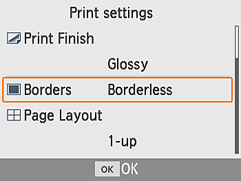 If images are cut off or cropped when you print them, follow the steps below to check or modify the settings.