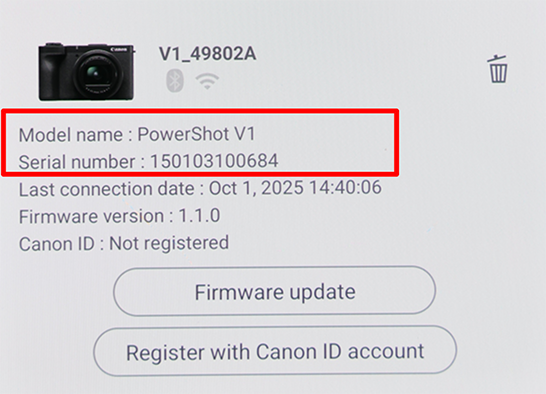 *For detailed instructions, please refer to the "Bluetooth Pairing and Wi-Fi Connection to Smartphones" section in the Canon PowerShot V1 Product Manual. (Canon : Product Manual : PowerShot V1 : Connecting to a Smartphone or Tablet)